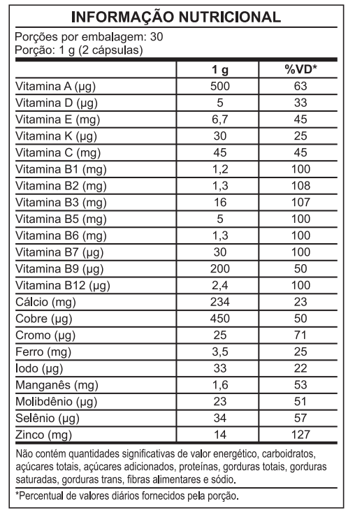 Sua fórmula reúne vitaminas e minerais importantes, em cápsulas práticas para consumo diário.